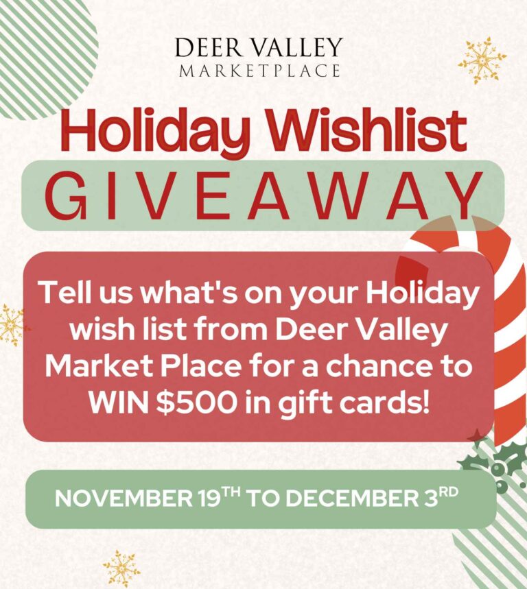 Five lucky individuals will be randomly selected to receive a holiday surprise basket valued at $500 from Deer Valley Tenants. Click on the “Read More” button for more details on how to enter!