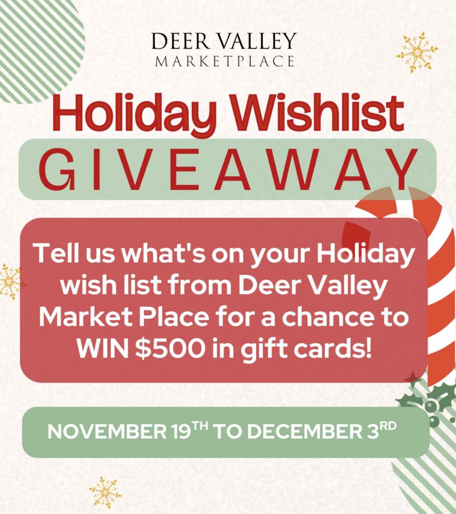 Five lucky individuals will be randomly selected to receive a holiday surprise basket valued at $500 from Deer Valley Tenants. Click on the “Read More” button for more details on how to enter!